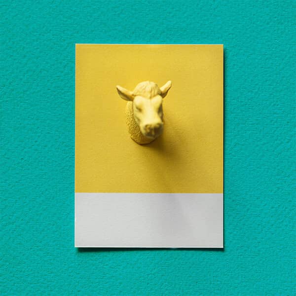 Un paysage vert et marron avec un océan bleu brillant et un ciel plutôt nuageux, réalisé à la peinture à l’huile.
